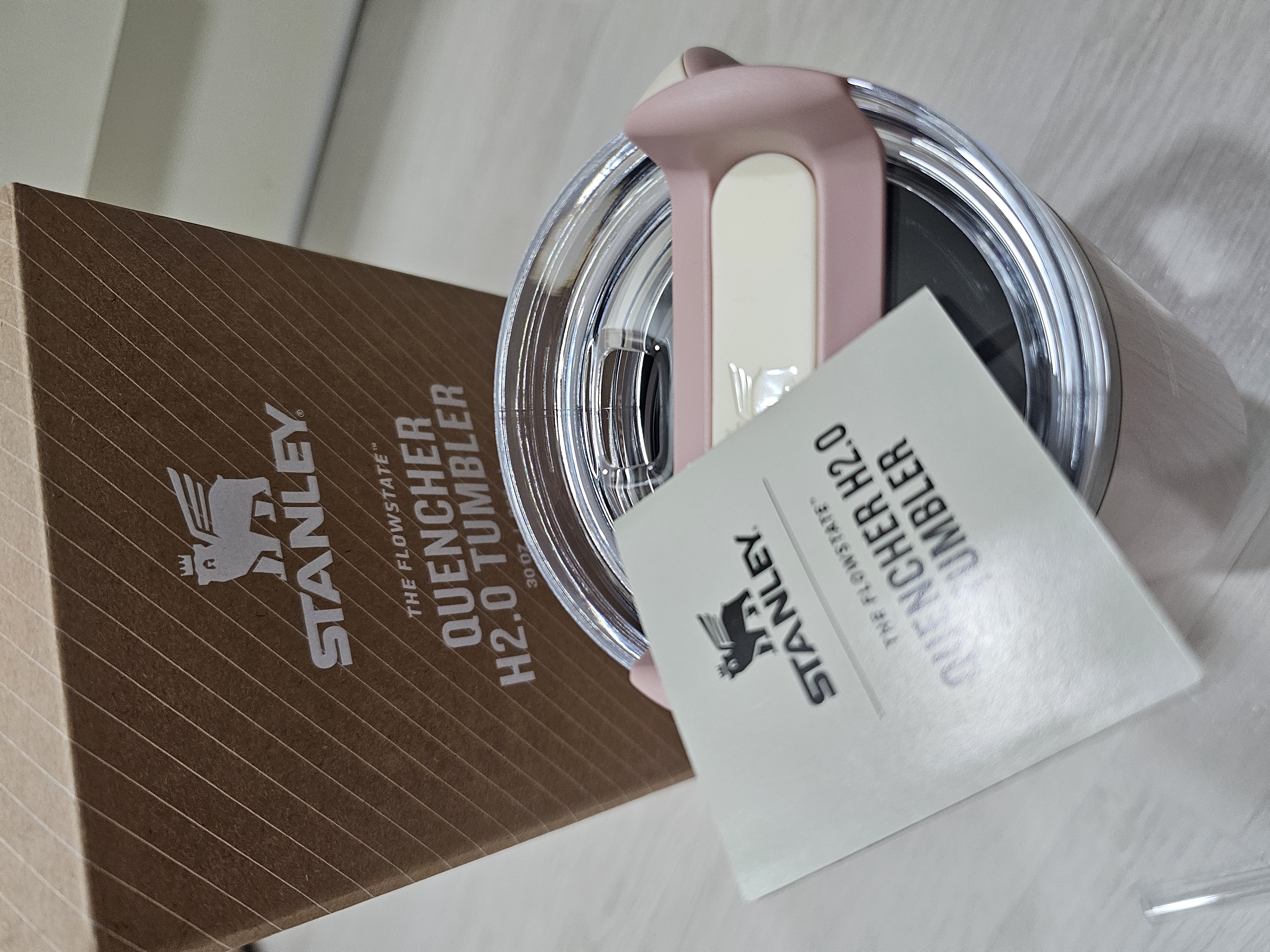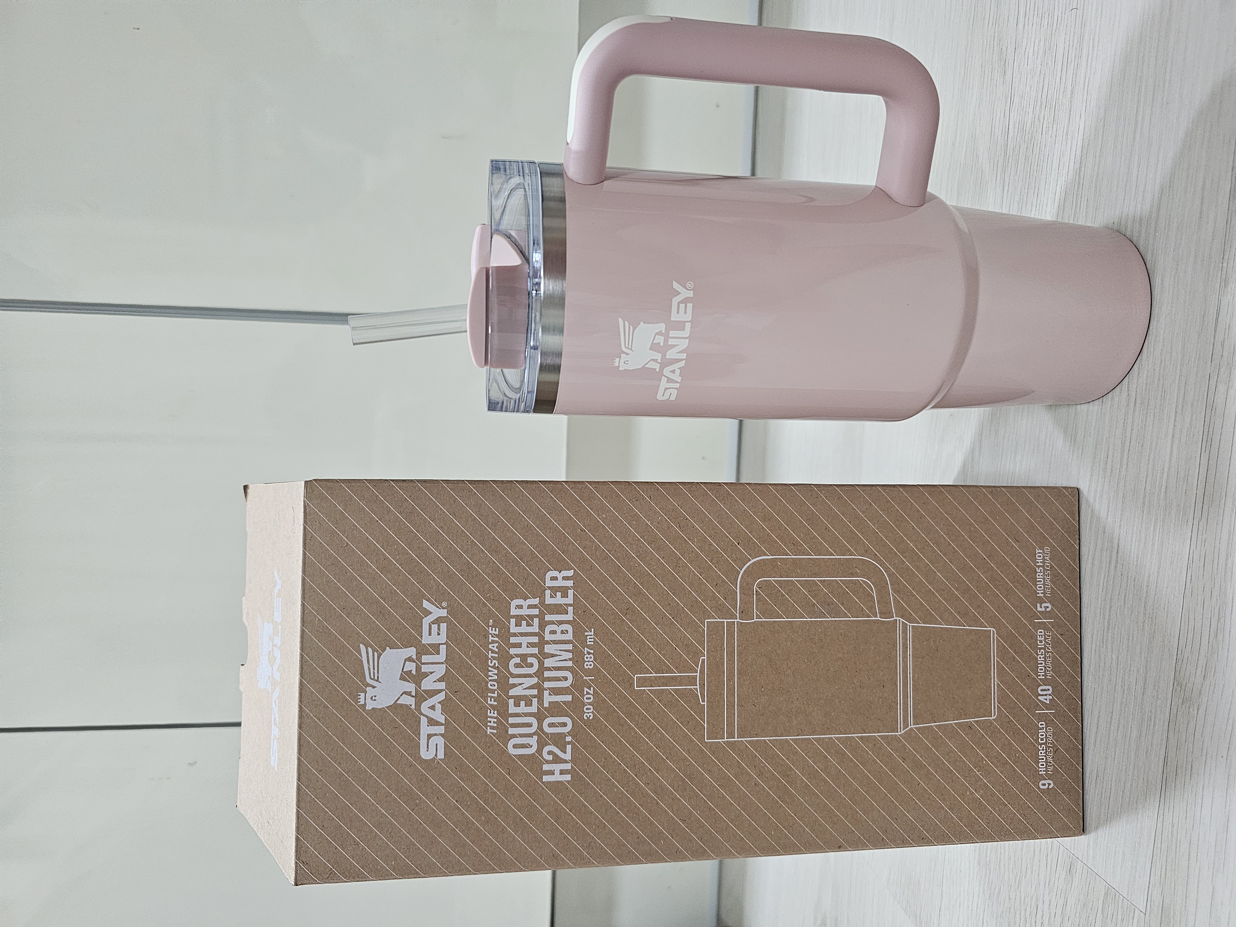 그래서 준비한 저의 여름 필수템, 바로 스탠리 텀블러 퀜처 H2.0 플로우스테이트 887ml 피치 휩 글로스입니다.
